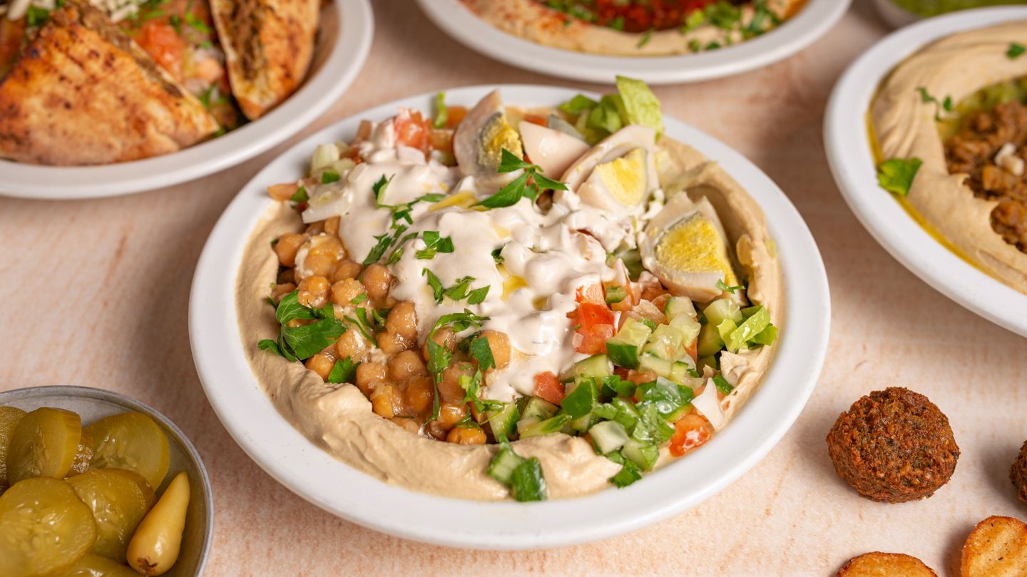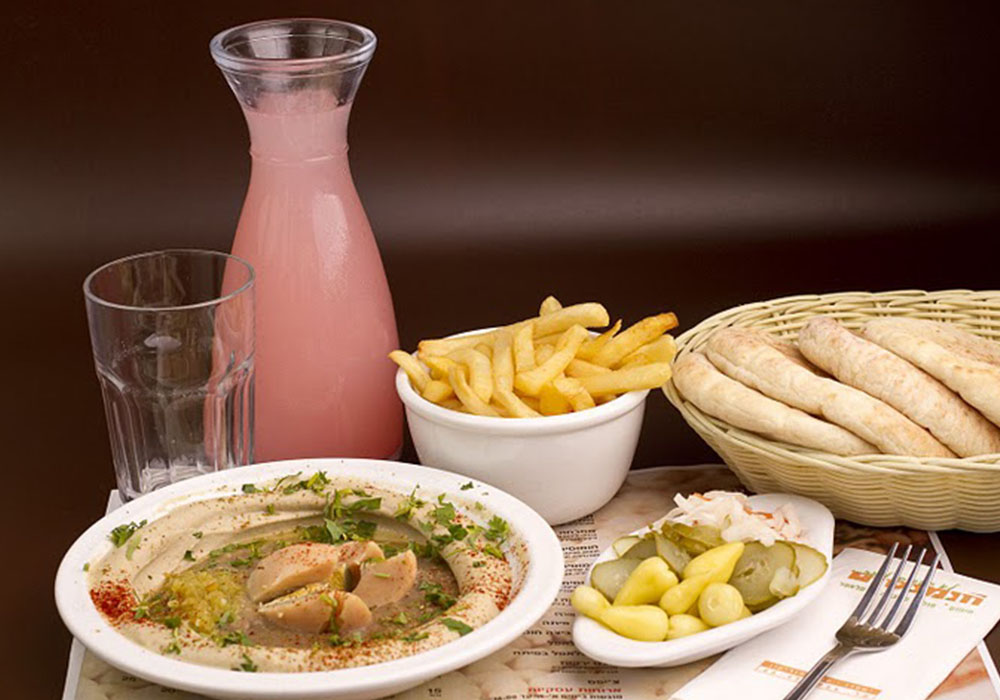 Our menu includes Egyptian beans, hot chickpeas, masbaha, roasted pine nuts, hot mushroom stew, special tahini, red shakshuka, crispy falafel balls, fresh French fries and a well-chopped vegetable salad - we suggest you wipe them all with hot pitas- mother in law. Do not forget to also try the "chickpeas shakshuka" for which people come to us from afar. In the new branch in Ramat Gan, you can enjoy it unique to us, hummus asado. Chickpeas with chunks of beef or chicken asado, uniquely cooked for hours with South American seasoning topped with chimichurri and salsa. You can rinse all of these with fresh juices like the lemonade, which we squeeze here instead.