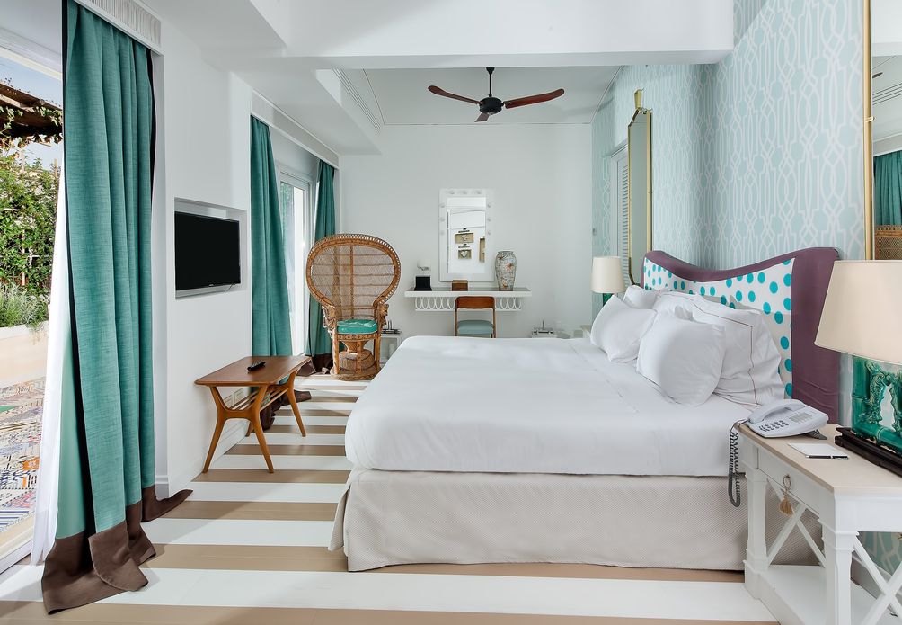 עם משטח של כ-70 מ"ר (755 מ"ר), הסוויטות המרווחות, האקלקטיות והתוססות הרעננות עם חדר שינה אחד כוללות נושאים מנוגדים המבטאים סגנון רטרו של קאפרי.