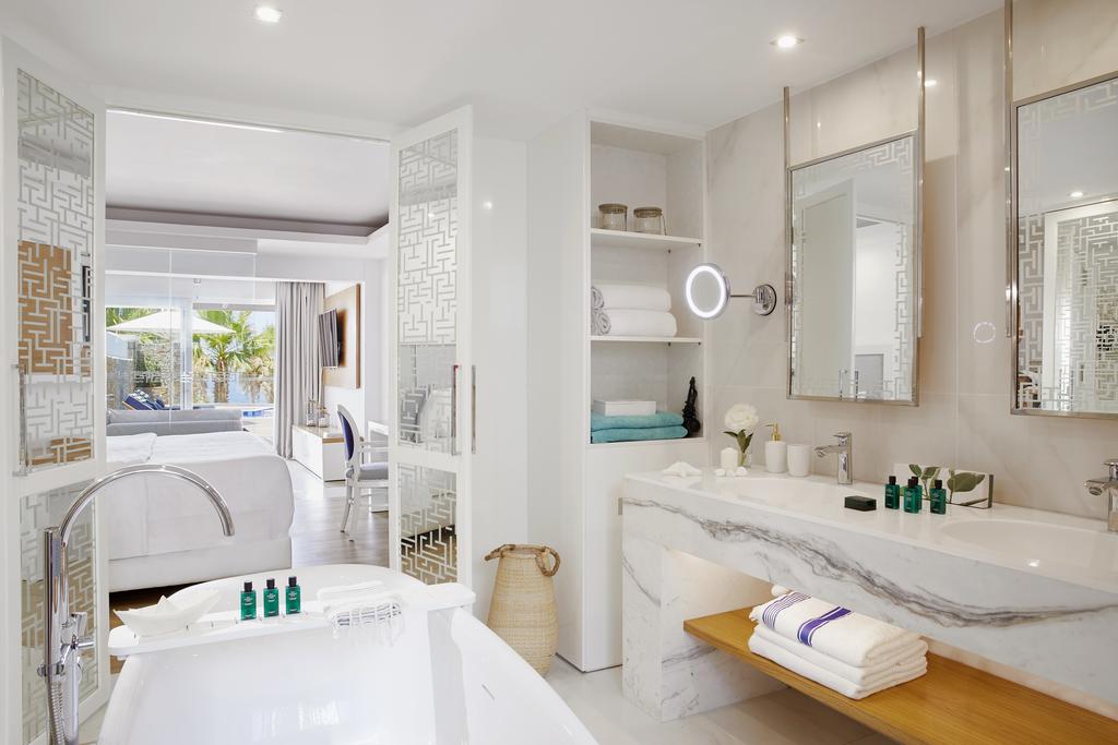 הירגע עם נוף לים ובריכה פרטית. חדר הרחצה המתוחכם בסוויטה מרווחת זו כולל אמבטיה, תא מקלחת נפרד ומוצרי טיפוח של מעצבים. תיהנו מתנת קבלת פנים, מבחר של מזרונים וכריות ומגבות חוף. * טלוויזיה בלוויין בגודל 40 אינץ' עם ערוצי מוזיקה * נגן DVD * כספת * חלוק רחצה, נעלי בית ומוצרי טיפוח מעוצבים * אינטרנט אלחוטי - גישה לאינטרנט אלחוטי, מהיר חינם * מרפסת או טרסה מרוהטת * בקרת אקלים אישי * מקלחת * אמבטיה * מייבש שיער * ספת מיטה * מגבות חוף * מבחר מזרונים וכריות * שירות חדרנית בערב