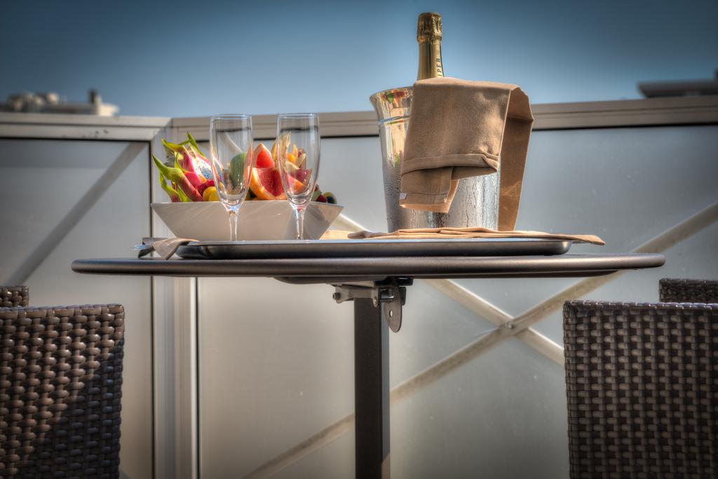 כל חדרי האירוח היוקרתיים של מלון חואן-לס-פינס כוללים טרסה או מרפסת עם נוף לעיר או לבריכה.