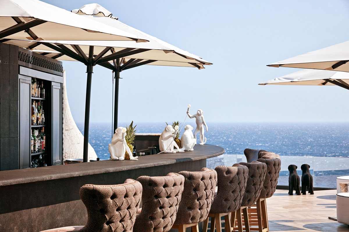המעצב שלנו דמיין את האווירה כ"לופט מטרופולין מעל הים, קנבס של חומרים לבנים, רהיטים ואביזרים שמעצים טקסטורות, אור ומבנה". הטופוגרפיה שמסביב מובאת עם אבן ועץ, בעוד שהניגוד הטונאלי של אלמנטים עיצוביים הוא קריצה למראה הבינלאומי שעובר בכל דבר במיקונוס.