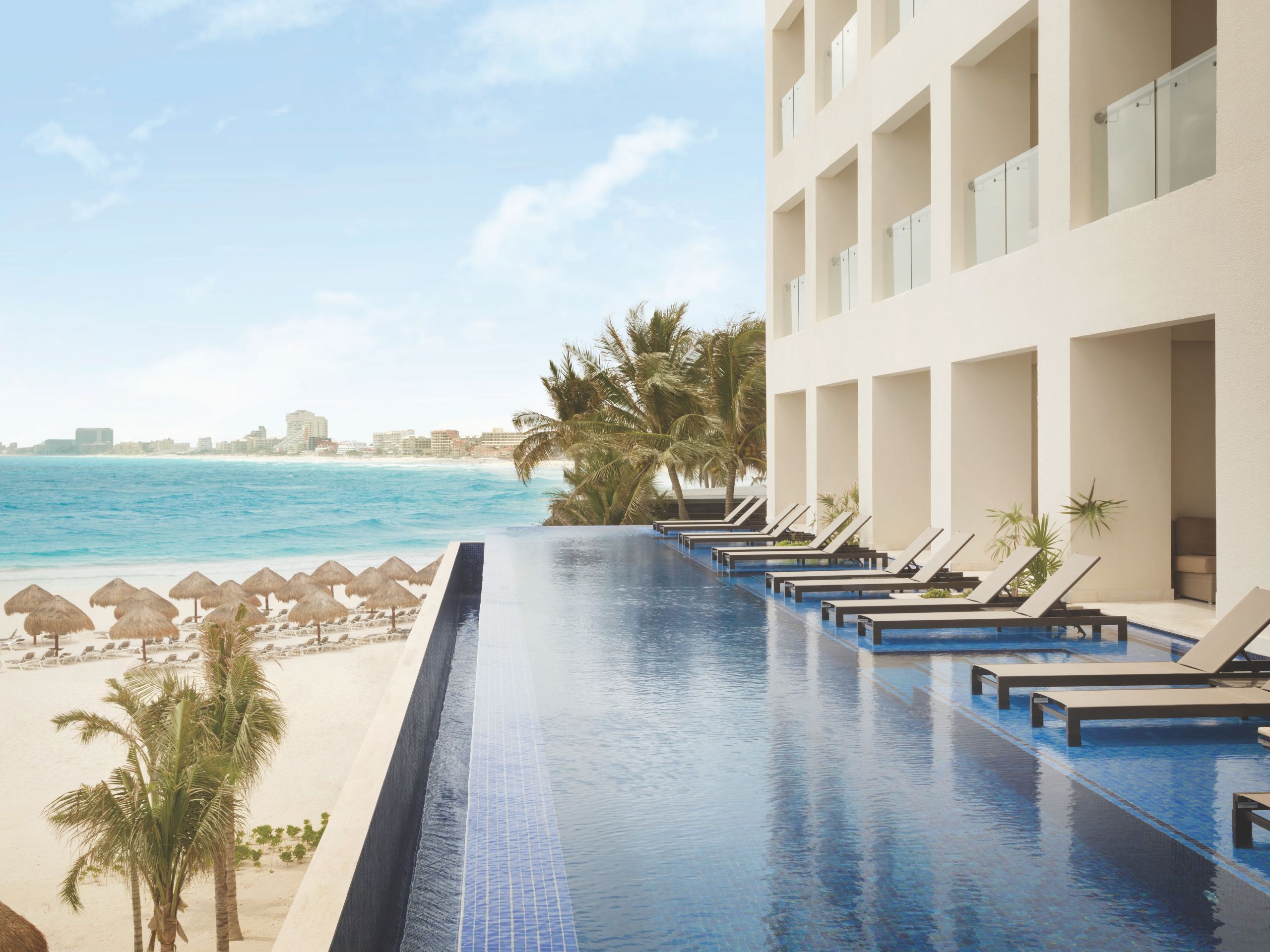 Located in one of the most breathtaking destinations in the world, with spectacular views of the Caribbean Sea, This spectacular Cancun resort features beautiful suites, three Infinity pools, including an adults – only rooftop pool and two pristine white sand beaches. Kids have the vacation of a lifetime with the KidZ club with a water play area and tree house.