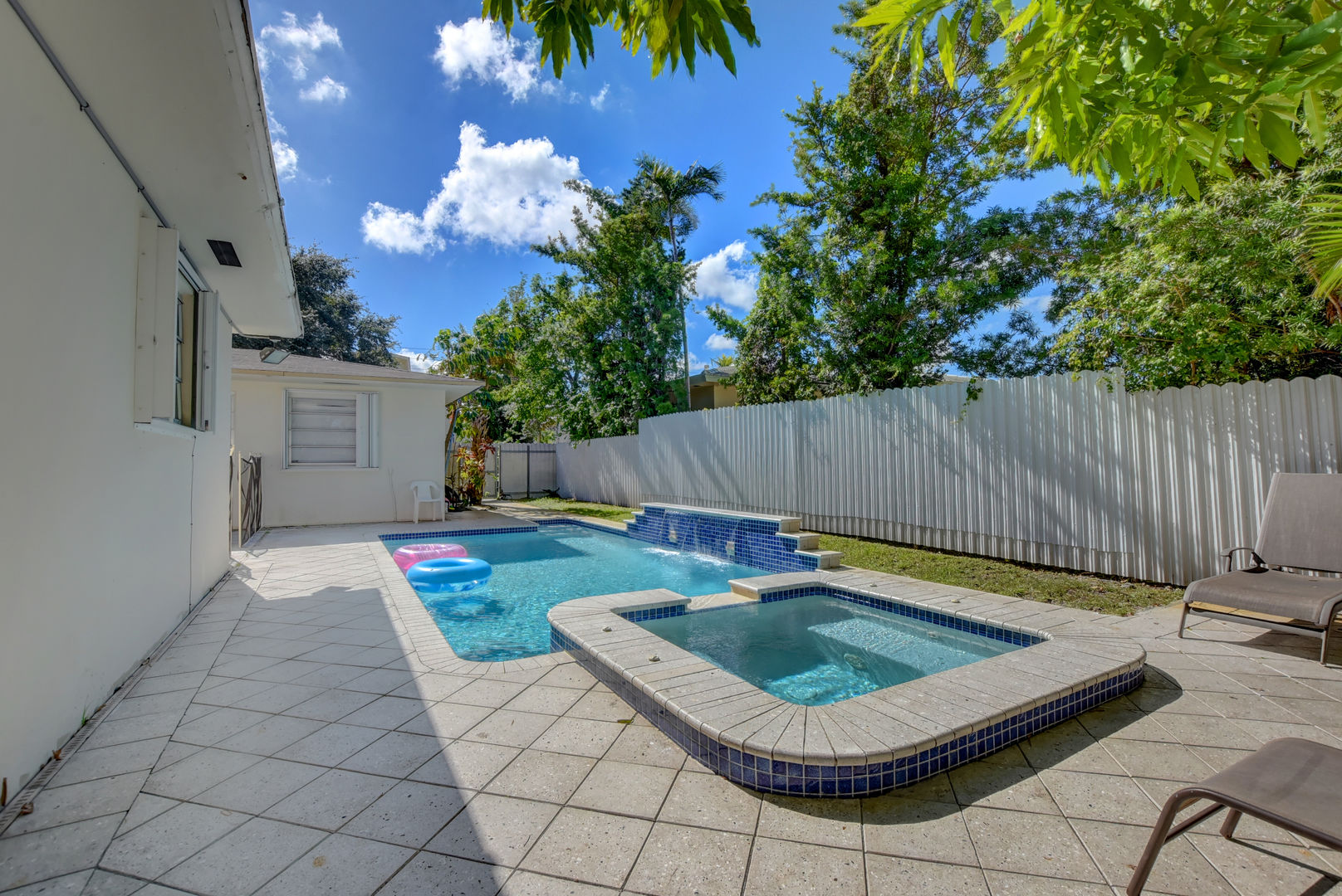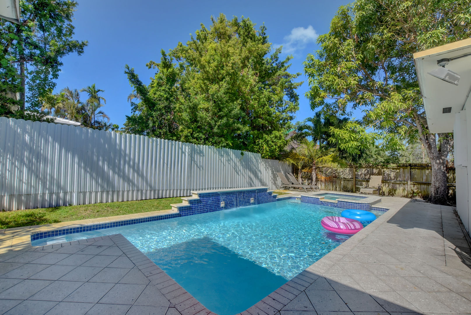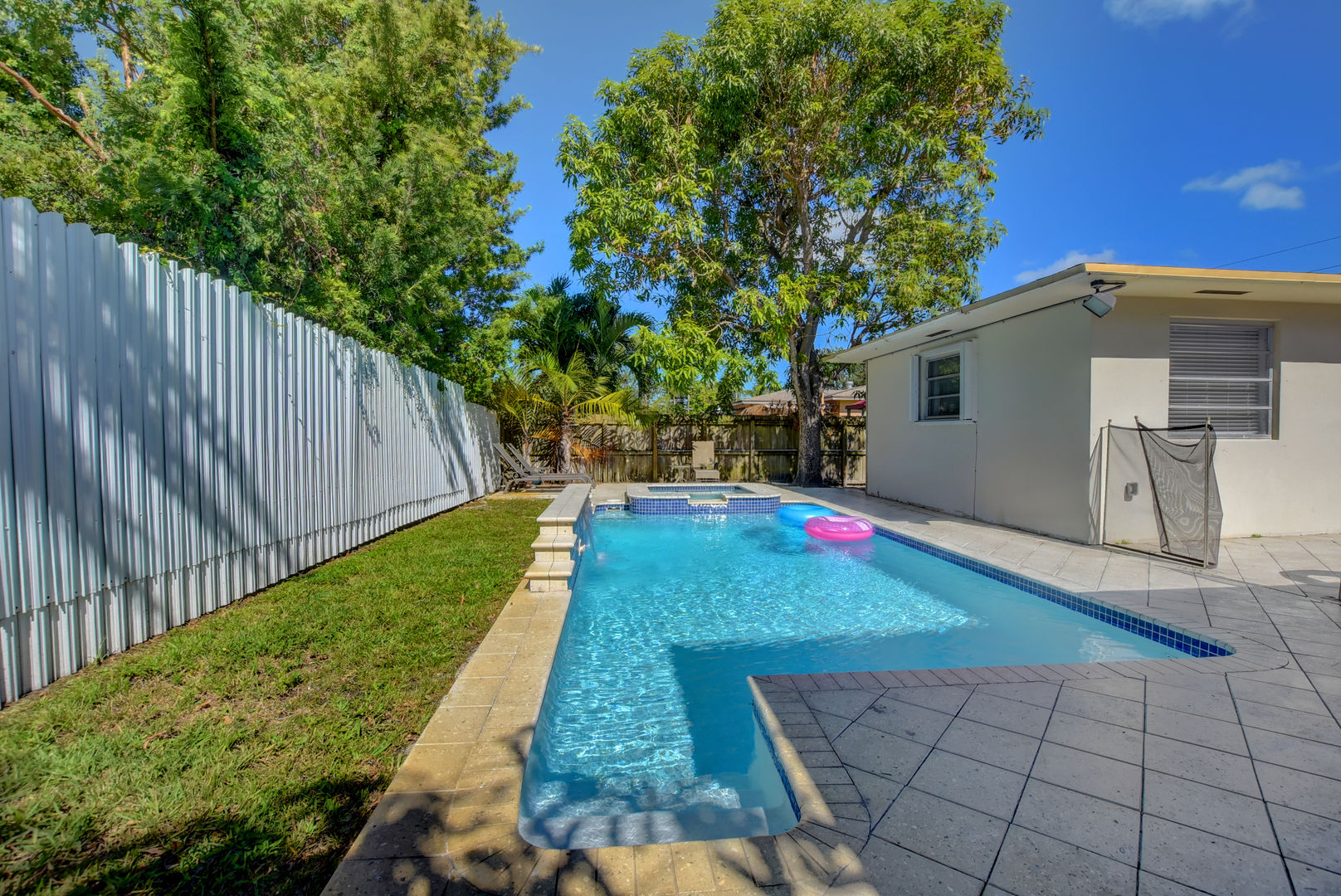 מכיוון שהבית הזה ממוקם על מגרש פינתי, שטח חיצוני הוא בשפע כשאתה עובר דרך כל אחת מהדלתות שנפתחות לנכס בשלושה כיוונים שונים. האזור האחורי מציע הרבה אפשרויות ישיבה, ותוכלו לסירוגין בין סעודה באוויר הפתוח על שולחן הפטיו והכיסאות לבין קפיצה לבריכה המחוממת עם ג'קוזי צמוד. בצד הנכס יש סט נדנדות, המכוון לקטנים ביותר בקבוצה שלכם, ובחצר הקדמית יש הרבה דשא שכולם יוכלו לספוג את השמש.