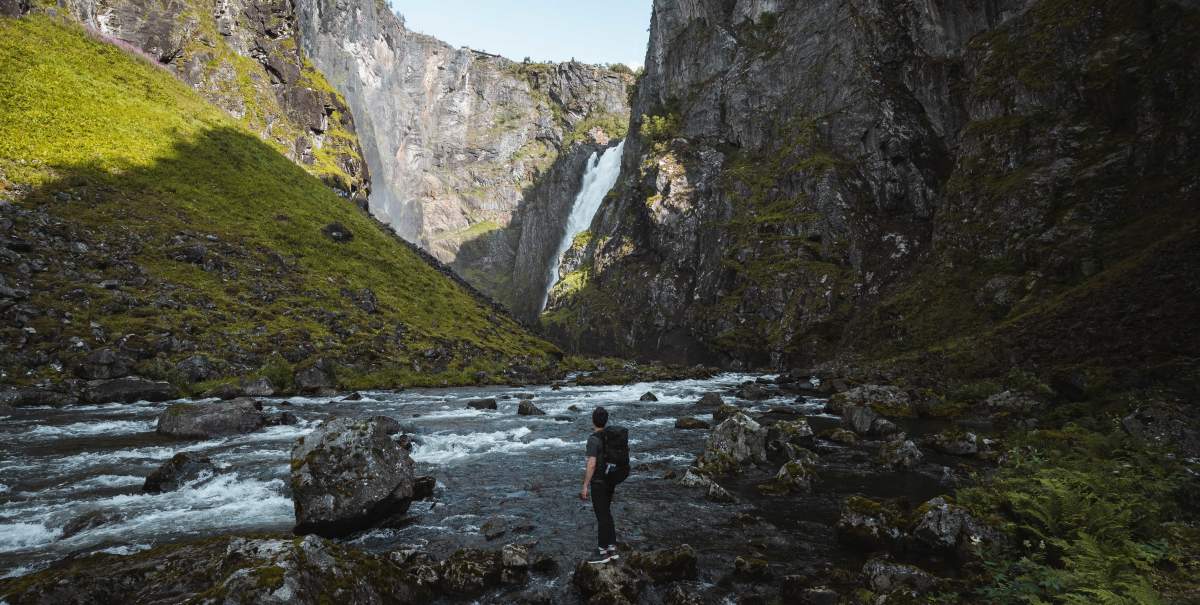 טיול יום ל"נהרות השלג", גשרים תלויים ורפש לבן ב-Finse העליון ואז עצירה במפל אורינגפוסן ועיירת הפיורד הציורית הממוקמת בקצה הנהר Eidfjord.