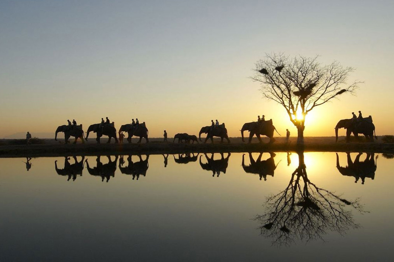ספארי גב פיל בבוקר. סיור מסוקים אופציונלי מעל המפלים זמין גם כן.