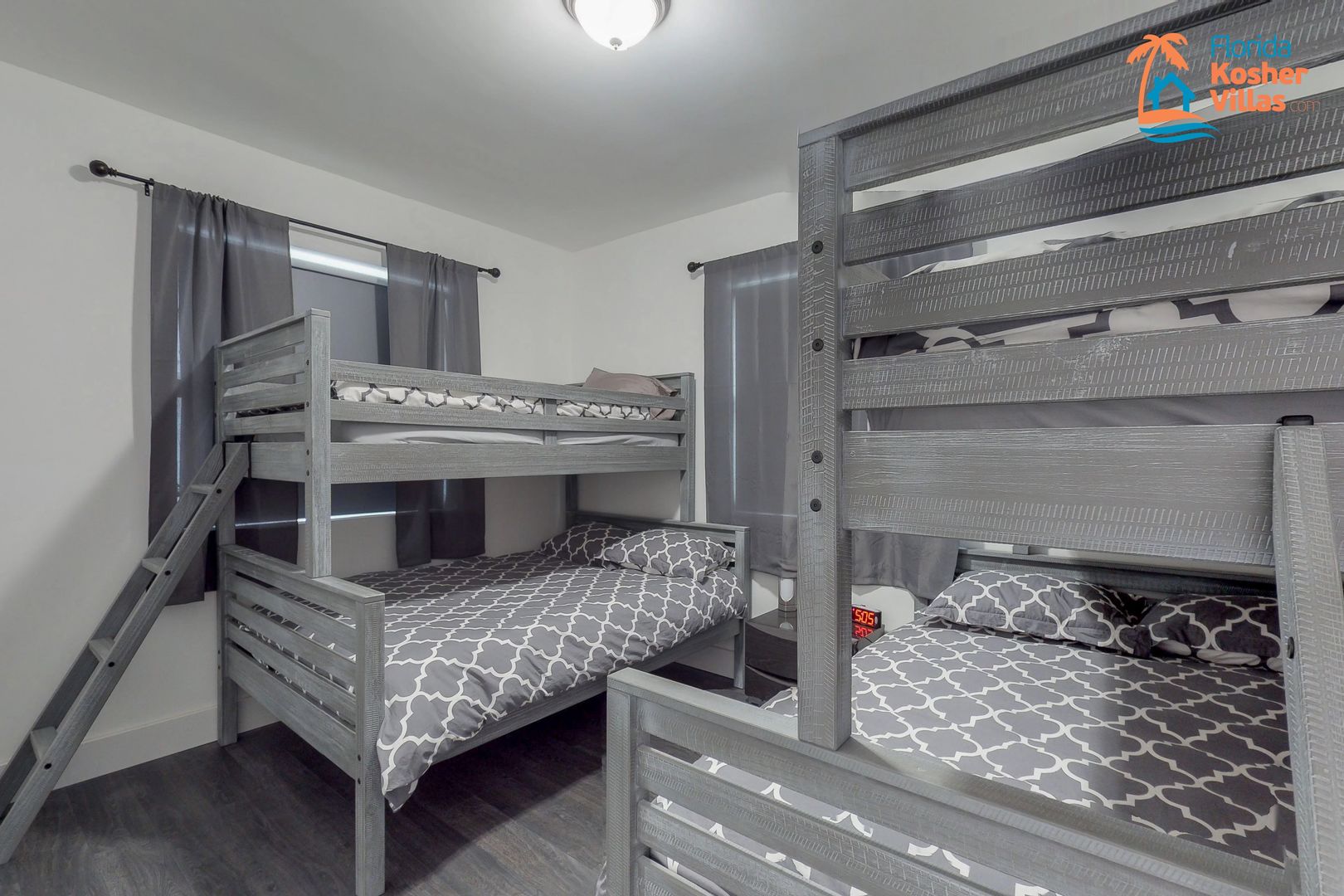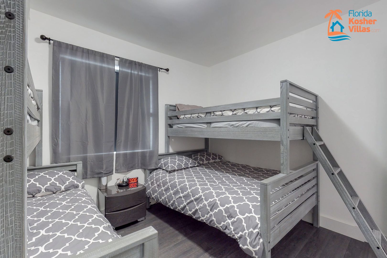 במסדרון מאזור המגורים שלושה חדרי שינה. האחד הוא חדר השינה הראשי הראשי עם שתי מיטות בגודל מלא בגודל 54 אינץ' וחדר רחצה פרטי משלו עם מקלחת. לחדר זה יש גם טלוויזיה בעלת מסך שטוח צמודה משלו. חדר שינה שני כולל שתי מיטות מלאות בגודל 54 אינץ' וארון גדול. השלישי הוא ייחודי ומושלם לזוג צעיר עם ילדיהם, לאחר שהוקם עם שתי מיטות קומותיים. בחלק התחתון של כל אחד מהם יש מזרן בגודל 54 אינץ' ובמפלסים העליונים יש תאומים. אזור הארון הכפול מספק שפע של מקום לאחסן את החפצים של כולם, וגם את המזוודות שלו.