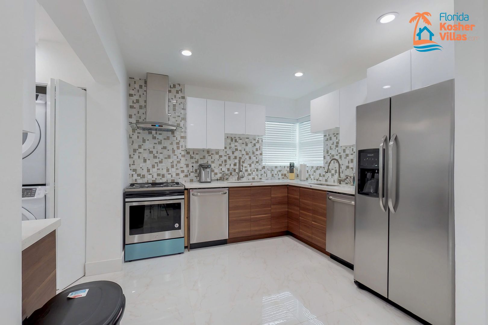 מכשירי אל-חלד מהשורה הראשונה, כולל מקרר זה לצד זה עם מתקן קרח ומים, שני מדיחי כלים נפרדים, כיריים חשמליות ותנור, קולט אדים מקצועי ושני כיורים, משתלבים יפה בתחתית בגווני עץ חמים. ארונות וחלקים עליונים לבנים מבריקים של המטבח העוטף. ה-backsplash נבחר בקפידה כדי להפגיש את כל שלושת הצבעים וליצור אפקט מדהים. עם נוף החוצה ולאזור המגורים/אוכל, זהו המקום המושלם עבור השף של המשפחה. מרכז הכביסה תחוב מאחורי דלתות כפולות ומכונת Keurig מוצבת בקרבת מקום באזור אחר עם שטח נוסף בארון ובדלפק, כך שתוכלו ללגום מהחליטה האהובה עליכם בזמן שאתם מחכים שהמייבש יסיים את מחזורו.