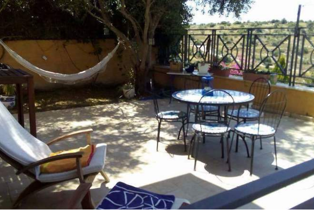 טרסות ופאטיו מסביב לבית עם עצים ועצי זית יפים.
