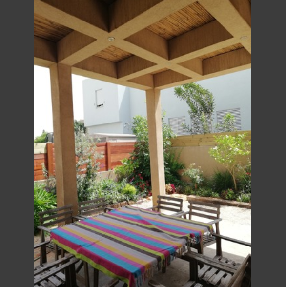 יש מרפסת מקורה וניתן לאכול אותה כל השנה מסביב לפינת המנגל.