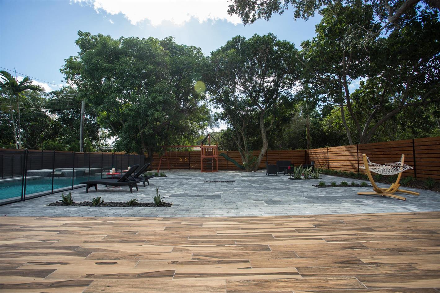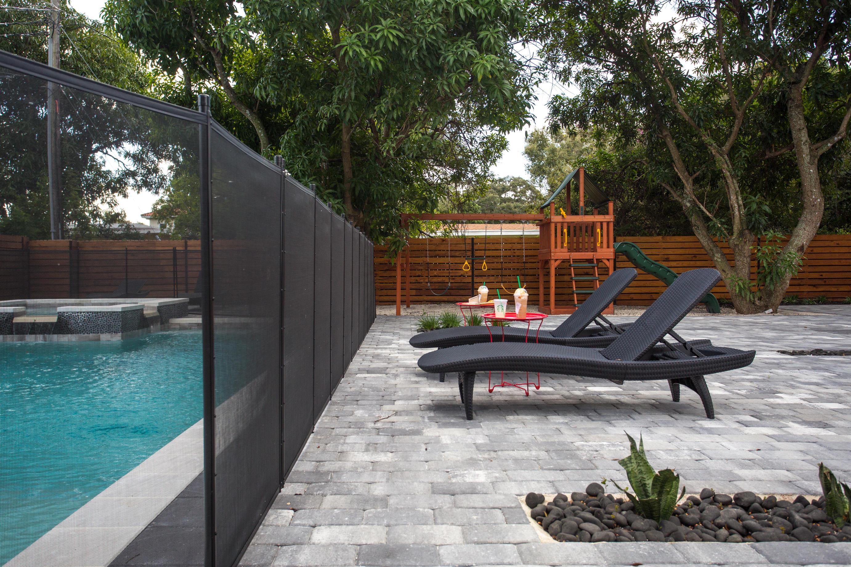 החצר האחורית שלנו מתהדרת בבריכה מחוממת מודרנית וג'קוזי