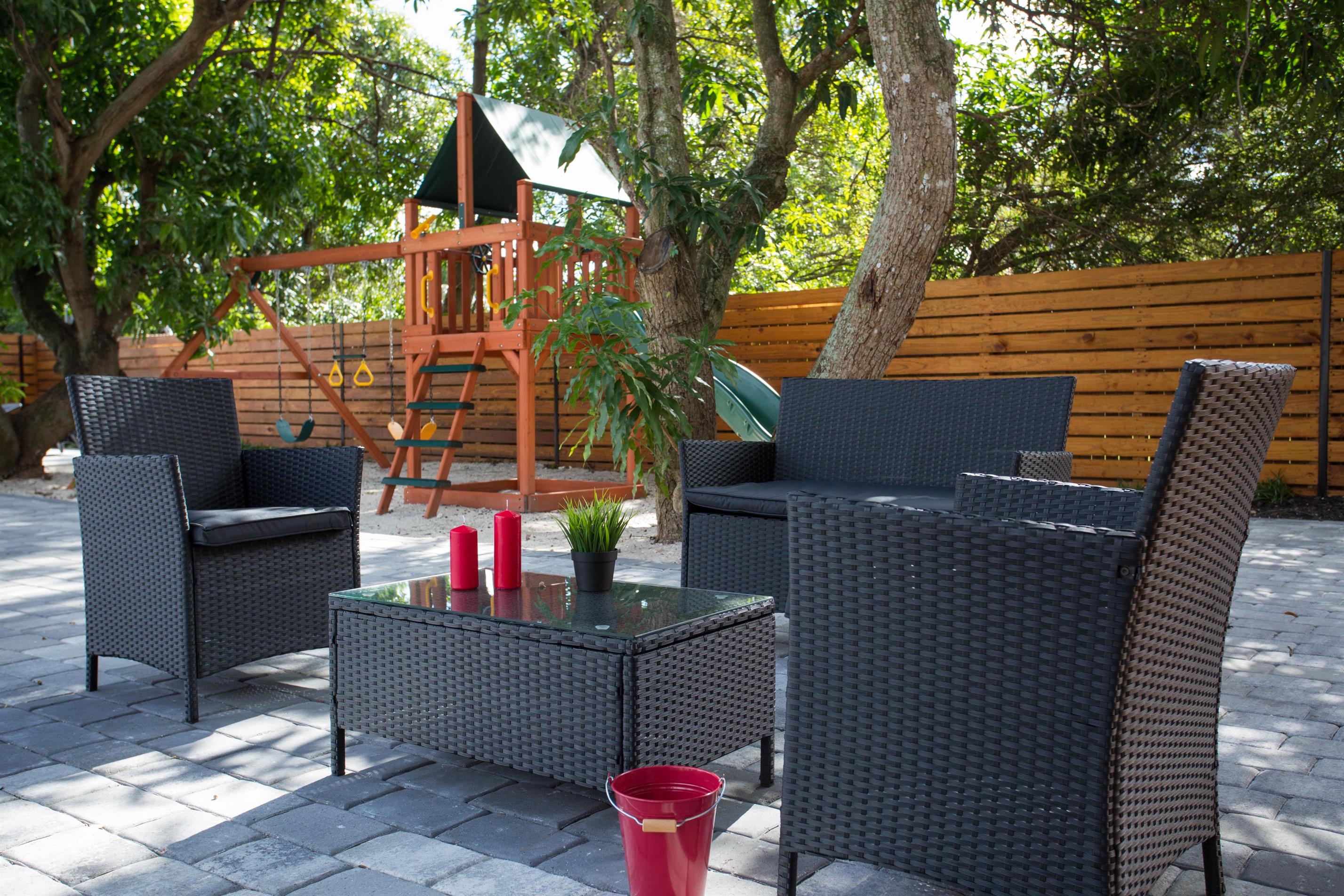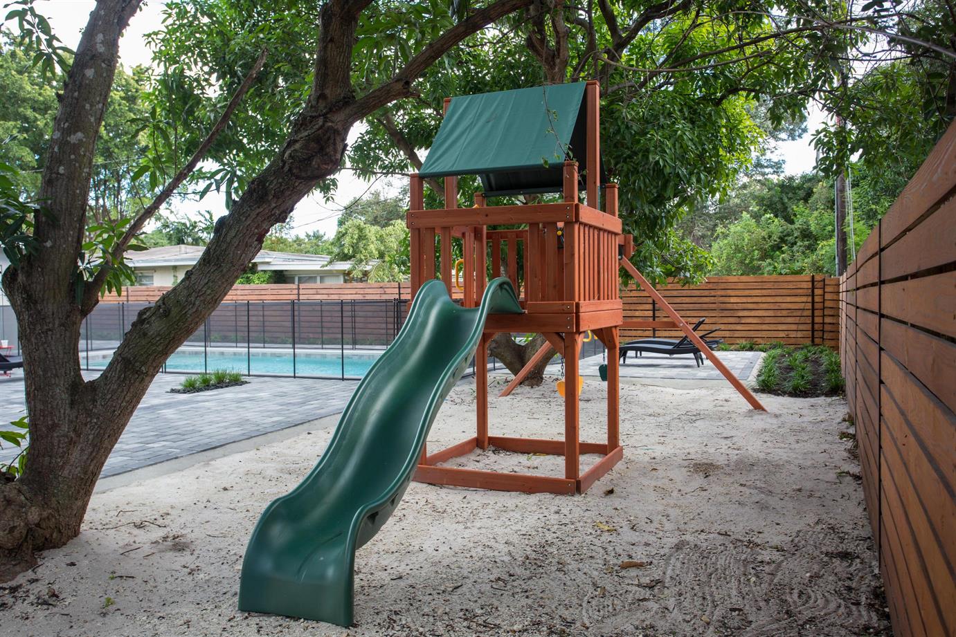 מגרש משחקים לילדים ופינת ישיבה מרווחת.